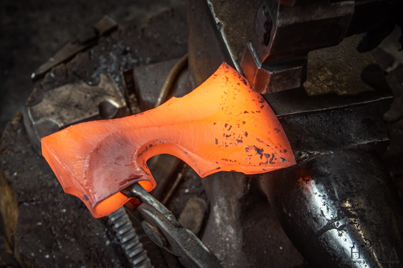 Во всех марочниках написано, что сталь ШХ15 не используется для инструмента. Точнее, там прописаны назначения, среди которых нет инструментального. И поначалу нас это тоже смущало. Долгое время считалось, что подшипниковая сталь хрупкая. Однако многие опытные российские кузнецы еще 5-6 лет назад уже ковали топоры из этой стали, и мы начали разбираться, почему они это делают. Нам потребовалось разбить не одну поковку и поучиться у опытных металлургов и термистов, чтобы избавиться от предубеждения насчет ШХ15 и понять, как грамотно проводить термообработку заготовок из нее.